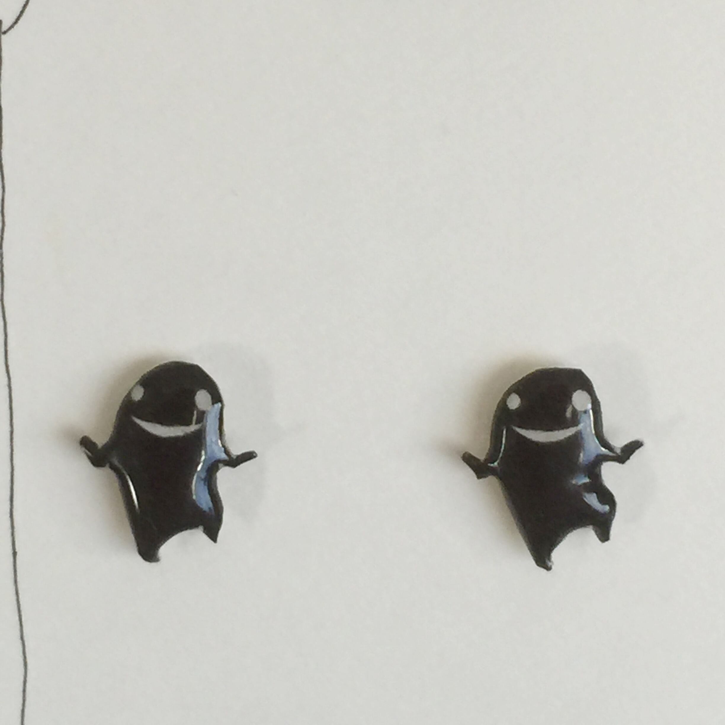 パソコンで描いたイラストを顔料インクで紙にプリント。手描きで微調整してから、レジンを塗ってぷっくりつやつやに仕上げます。注文を受けてからつくり始めますので、商品到着までのんびりだいたい10日ほどかかります。価格はなんと送料込み。普通郵便などでポストに届きます。