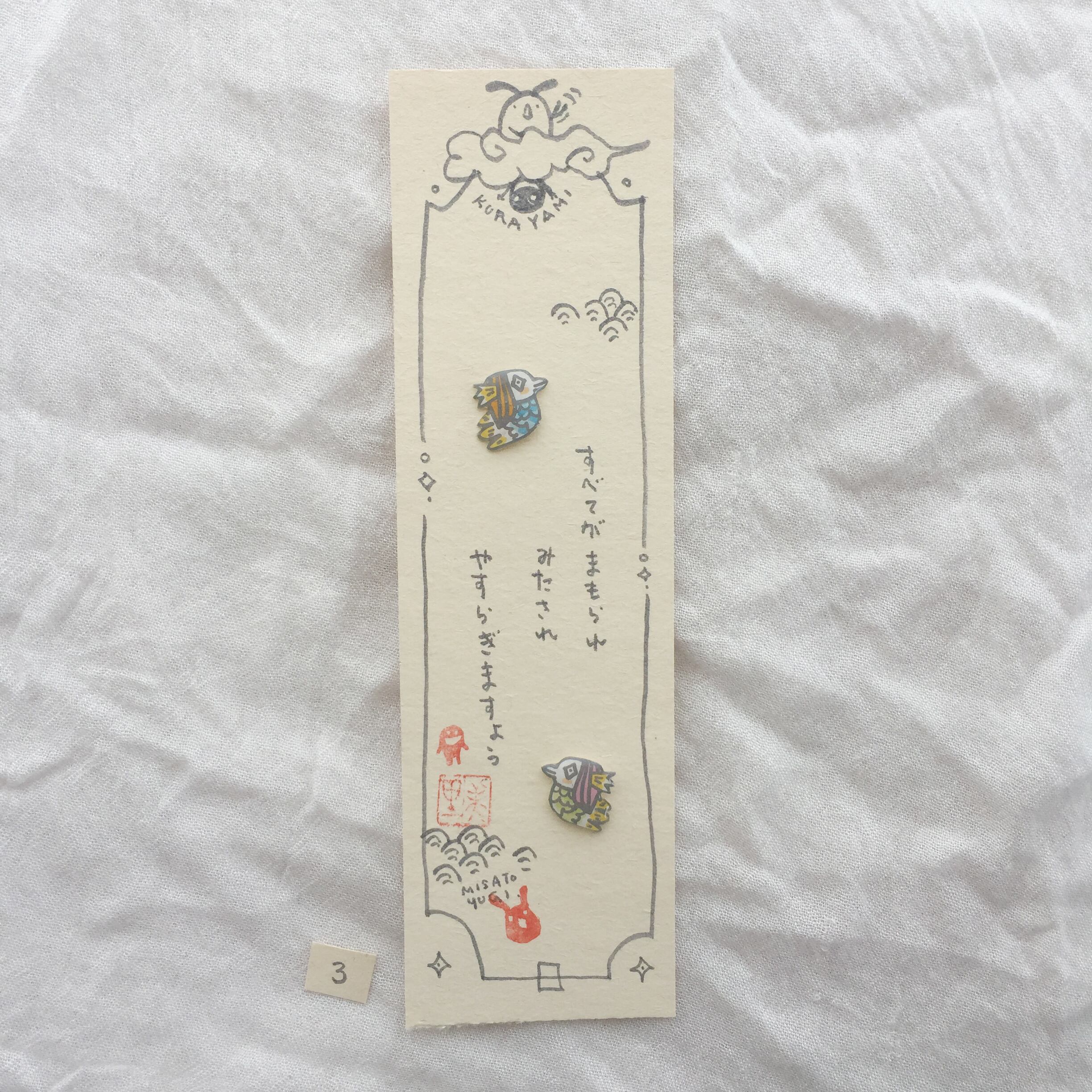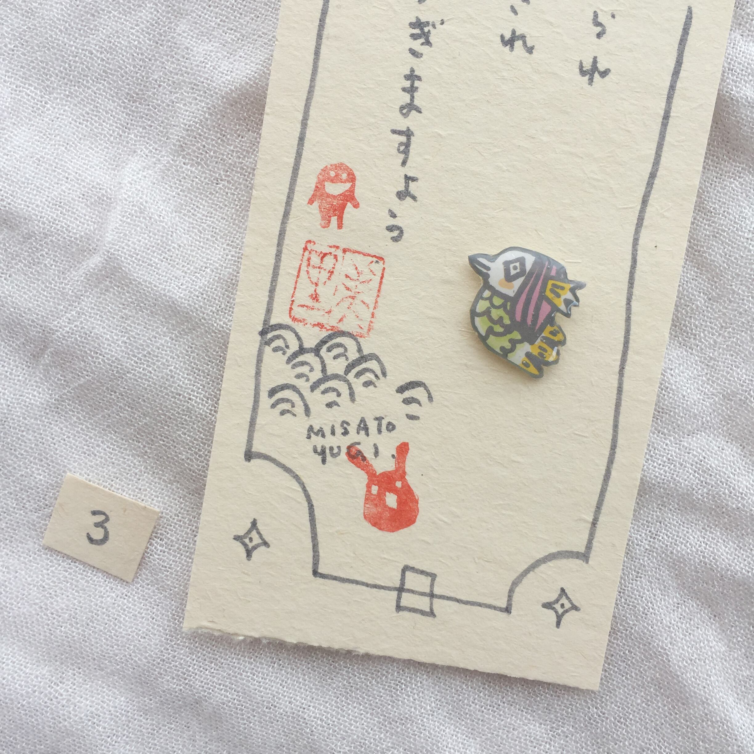 柚木ミサトがパソコンで描いたイラストを顔料インクで紙にプリント。手描きで微調整してから、Soy Catをはじめとする暗闇メンバーが、レジンを塗ってぷっくりつやつやに仕上げます。注文を受けてからつくり始めますので、商品到着までのんびりだいたい10日ほどかかります。価格はなんと送料込み。普通郵便などでポストに届きます。